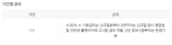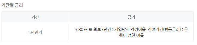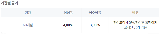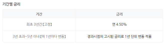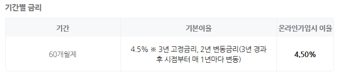 기간 : 60개월(3년 고정금리/2년 변동금리 적용)